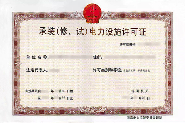 承裝(修、試)電力設施許可證